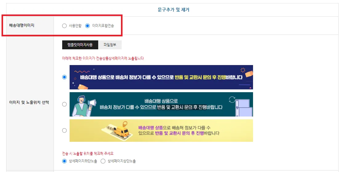 7-2-3. 배송대행 이미지 및 제3자 정보제공동의 이미지 선택