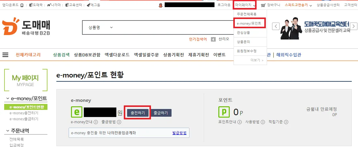 단, 적립금(e-money)로만 결제가 가능하므로 사전에 충전을 해야합니다.