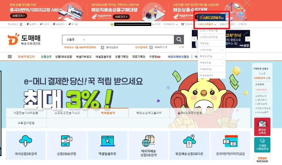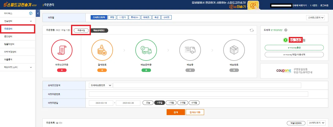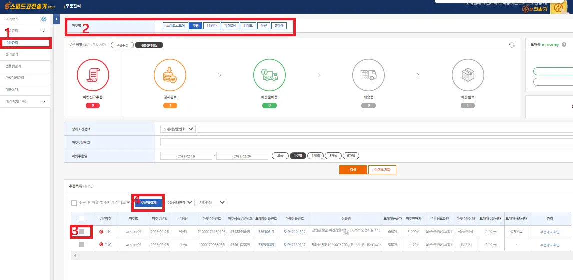 도매매에서 배송 처리 문자가 오면 택배사 및 택배번호를 확인하여 입력 후 배송처리